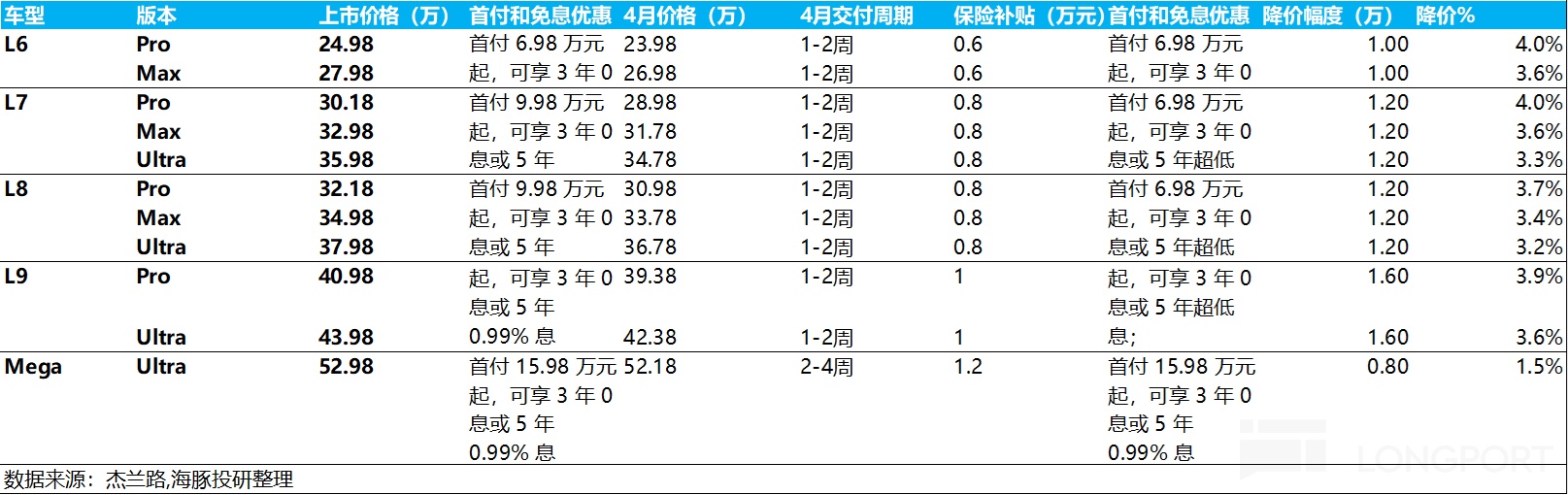 This quarter, the model structure actually showed a slight improvement trend quarter-on-quarter, with the proportion of Mega, the highest-priced model, increasing by 0.5 percentage points, while the proportion of the low-priced L6 decreased by 0.9 percentage points, offsetting some of the impact of price reductions for clearing old models.