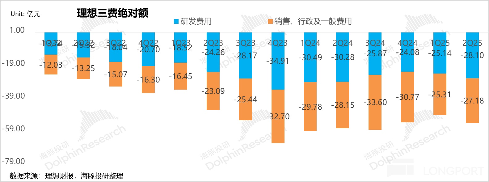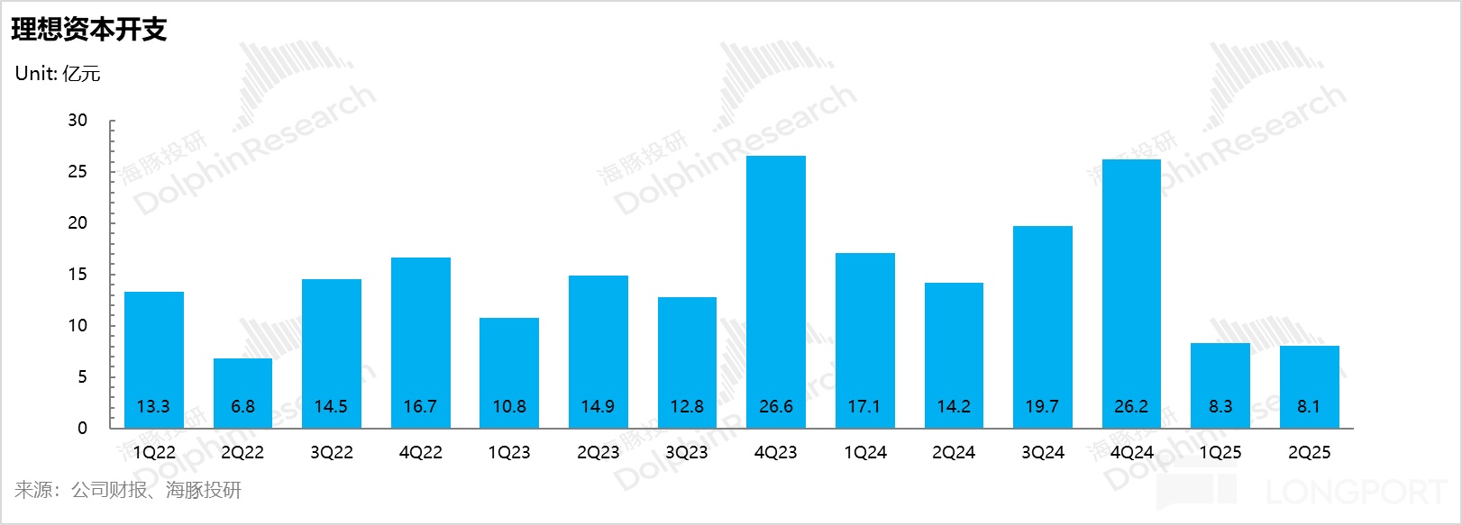 This quarter, Li Auto's R&D expenses were 2.81 billion yuan, in line with market expectations, continuing to grow by 300 million yuan quarter-on-quarter. The continued quarter-on-quarter increase in R&D expenses is mainly due to