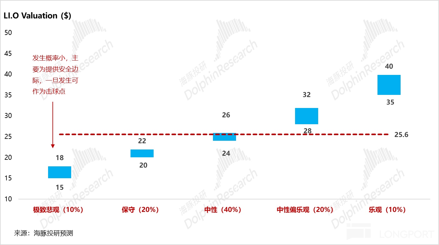 ② If the i6 pricing exceeds expectations (e.g., pricing below 220,000 yuan, further lowering by 20,000-30,000 yuan compared to L6 pricing), achieving "electricity cheaper than oil" to ensure i6 sales, and i6 sales successfully reach 10,000-15,000 units, although the L series basic sales decline is a high probability trend, the market is expected to start switching to the 2026 dimension, pricing the success of next year's extended-range major facelift + pure electric strategy, and the stock price is expected to evolve towards Dolphin Research's neutral to optimistic scenario of $30-40.