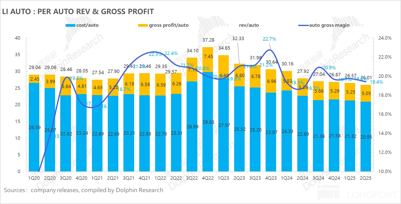 Looking at the single vehicle profitability, Li Auto's gross profit per vehicle in Q2 was 51,000 yuan, declining by 2,000 yuan quarter-on-quarter, mainly due to the decline in vehicle sales prices.
