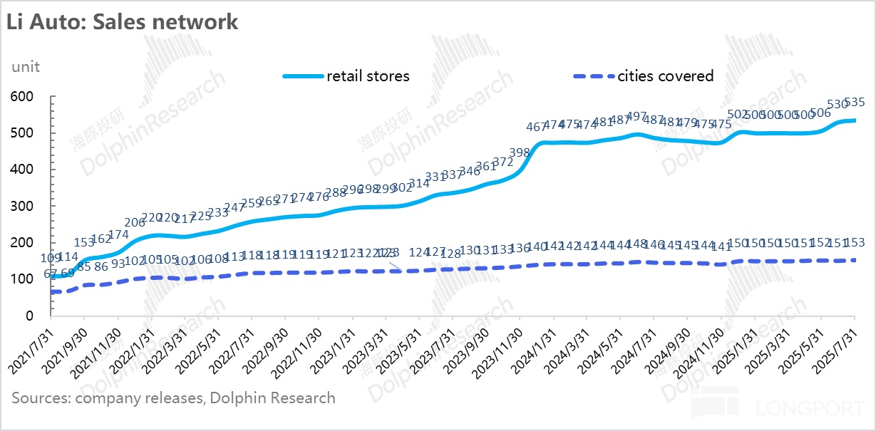 In terms of channel construction, Li Auto added 30 retail stores and 9 service centers in Q2, mainly in preparation for the launch of pure electric models i8 and i6.