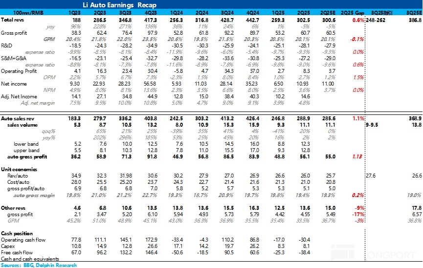 Since Li Auto's sales have already been announced, the most important marginal information is: 1. Q2 vehicle sales gross margin; 2. Q3 2025 performance outlook.