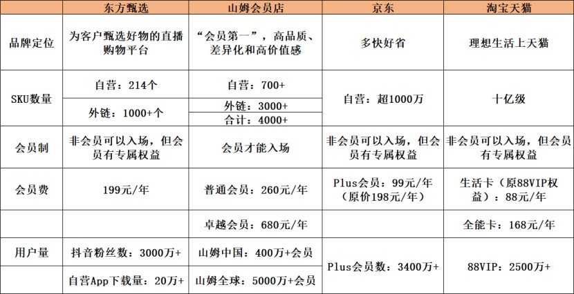 價格高於主流電商淘寶88VIP 會員的 88 元/年和京東PLUS 會員卡的 99 元/年,但低於會員制超市山姆260 元/年、Costco 299 元/年的會員費用。