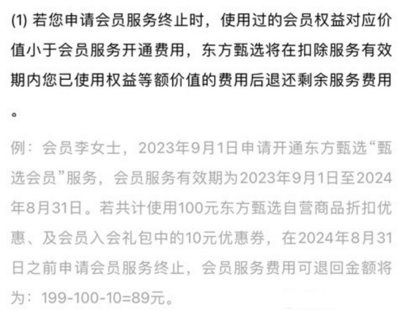 東方甄選在會員條款中同樣有不滿意退費的條款,“退會時返餘額”。這樣的設計有利於降低普通用户試用會員的門檻,增加用户試用意願。即使最終提前退會,也能收回花費,整體試用成本下降,幫東方甄選觸達更多潛在會員。