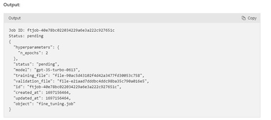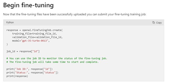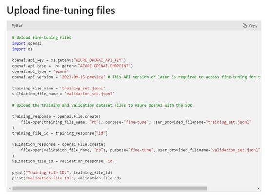 上传数据:微软在 Azure OpenAI 内置了数据过滤功能,当检测到用户上传的数据集包含非法、歧视等有害信息时,会自动删除这些内容。以下是上传数据集代码示例。