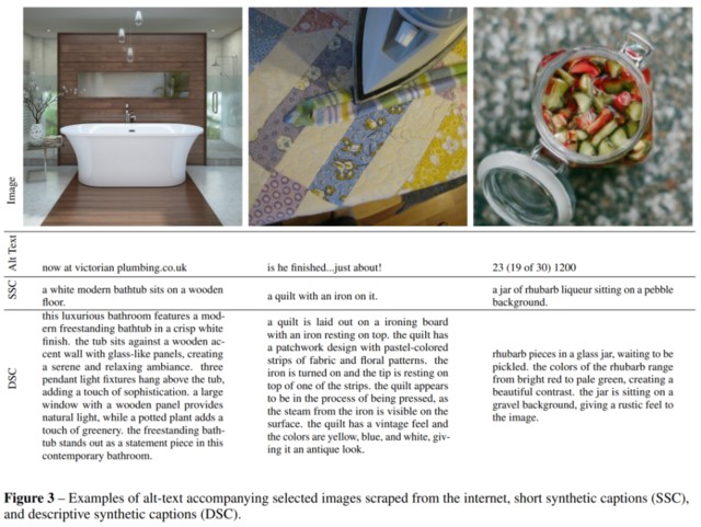 他們在該數據集上對基礎文本生成器進行進一步微調,並將該文本生成器生成的文本稱為「描述性合成描述」。下圖 3 展示了真值、短合成和描述性合成描述的示例。