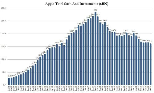此外,公司第四財季總體運營開支 134.6 億美元,略低於預期的 136 億美元;宣佈現金分紅每股 0.24 美元,第四財季花費 250 億美元用於股票回購和股息分發,季末持有 1621 億美元現金及等價物,略低於上季度末的 1665 億美元,也創 2014 年 6 月以來最低。