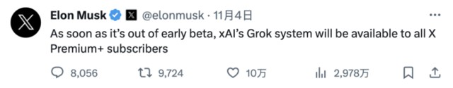 回到 xAI,馬斯克也在 X 上表示在即將到來的 Beta 版本上,所有訂閲 X Premium 付費訂閲用户都將體驗到 Grok 這款產品。
