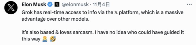 有趣的交互體驗:Grok 在設計時融入了一種詼諧乃至叛逆的特質,這使得與它的互動更加生動有趣,但也意味着對於特別敏感的用户可能需要一些時間去適應;