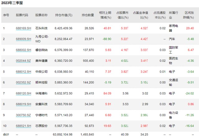 從該基金十大重倉股來看,此前重倉了 6 個季度的恩捷股份退出重倉股名單,寧德時代的持股數量與持有比例也有減少。