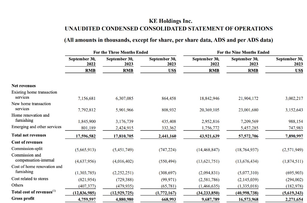 Beike's net profit in the third quarter increased by 63.4% YoY, nearly 10 times the expected amount | Earnings Report