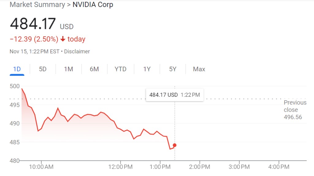 週三,英偉達勢將結束連漲 10 天的強勢行情,早盤在發佈 PPI 通脹降温數據後,一度漲至近 500 美元大關,但隨後轉跌,股價盤中跌超 2.5%。