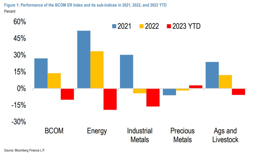 彭博大宗商品指數今年以來已經下跌了 10%。能源成為最大輸家,今年迄今暴跌了 20%,基本金屬受全球經濟復甦緩慢影響持續疲軟,迄今為止只有黃金等貴金屬實現了正增長。