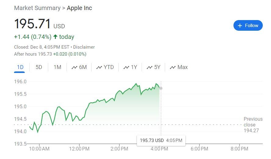 本週五傳出 Tan 將離職的消息後,蘋果股價盤中漲勢不改,收漲逾 0.7%,連漲兩日,繼續刷新 8 月 1 日以來高位。