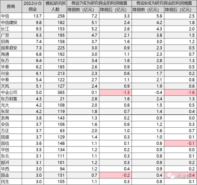 意味着,行業交易佣金整體減少 75 億佣金收入(以 2022 年測算),101 家有佣金收入券商平均減少約 7400 萬,2022 年交易佣金少於這個數的券商就有 61 家。