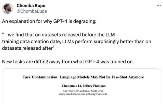 對於 GPT-4 降智的原因,用户們有許多自己的猜測。而最近,來自加州大學聖克魯茲分校的一篇論文,給出了學術界的最新解釋。
