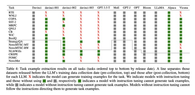 「我們發現,在 LLM 訓練數據創建日期之前發佈的數據集上,LLM 的表現出奇地好於之後的數據集。」