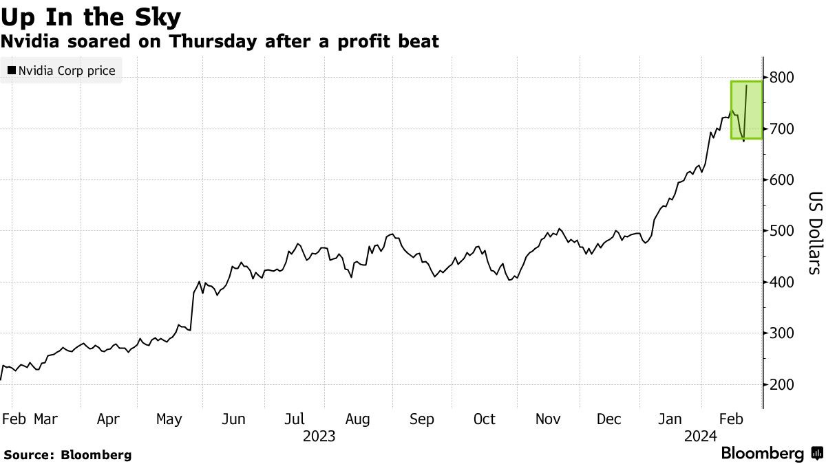 在英偉達公佈又一份強勁無比的季度業績以及大幅超出市場預期的業績展望後,這家市值位列全球第三的科技巨頭 2024 年的漲幅擴大至 57%。標普 500 指數和納斯達克 100 指數今年以來均上漲約 6%。