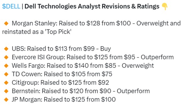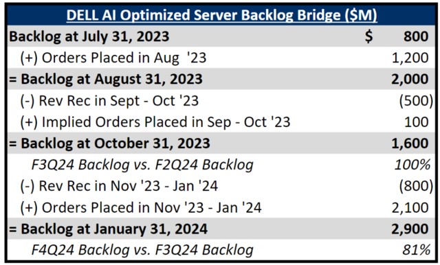 大摩對 DELL 訂單做的流水圖,非常清晰,説到底,新增訂單增速遠快於業績確認速度(交付速度),導致到今天 Backlog(在手訂單)已經是 6 個月前的 3.5 倍...上個季度擔心的 GPU lead time 耽誤收入確認,現在 H100 lead time 縮短成利好