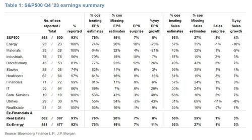 在標普 500 指數成分股中,93% 的公司已公佈財報,整體營收同比增長 4%,盈利同比增長 8%。