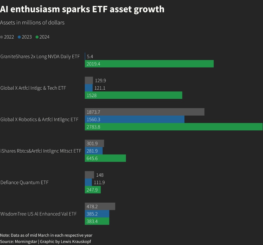 “英偉達浪潮” 中,AI 主題 ETF 過去一年規模已翻倍