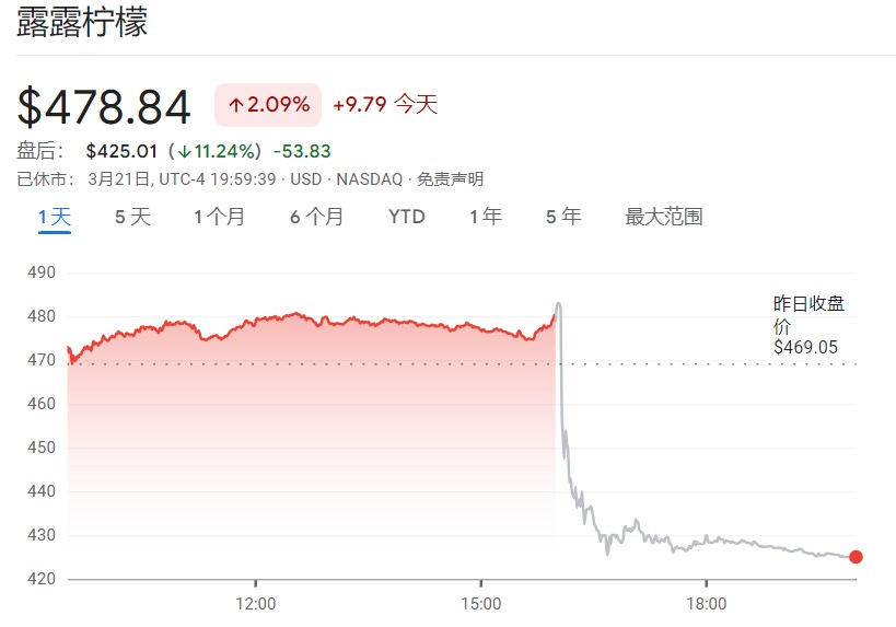 The U.S. market demand is sluggish, sales guidance falls short of expectations, Lululemon's stock price plunges by 11%