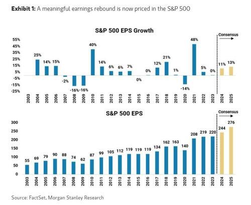 Wilson 在最新发布的文章中将当前的估值与 2021 年进行了比较,并指出,2024 年和 2025 年的盈利预期几乎未见调整,因此很难仅根据基本面来证明较高估值的合理性。