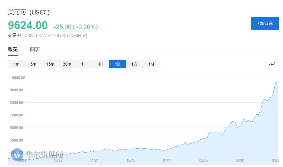 昨日紐約可可期貨暴漲至創紀錄的 10080 美元/噸,達到歷史最高水平,隨後有所回落,目前報 9622 美元/噸,倫敦可可期貨也衝上歷史高位。