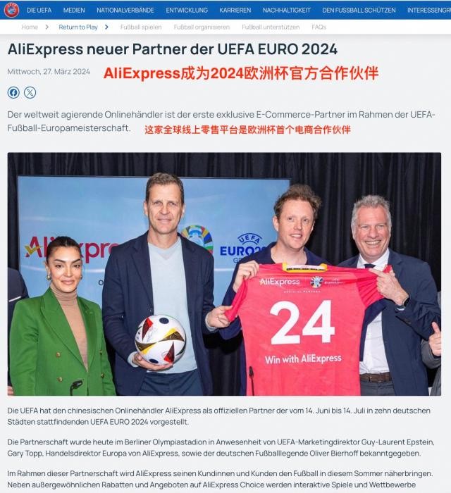 (歐足聯宣佈 AliExpress 正式成為 2024 歐洲盃獨家電商贊助商)