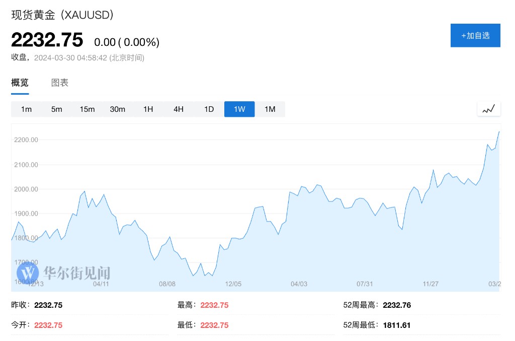 數據顯示,3 月 28 日夜盤,COMEX 黃金期貨漲 1.9%,報 2254.8 美元/盎司,三月漲幅達到 9%,刷新 2020 年 7 月以來的單月最大漲幅。值得關注的是,盤中金價一度觸及 2256.9 美元的紀錄高位。