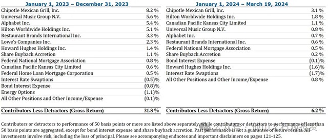 衍生品工具在潘興廣場的主要作用並非為了單獨作為獲取收益的投資工具,而是作為防止出現的黑天鵝風險。使用它的目的是實現獲得整體投資組合收益,而不是最大化單個套期保值的利潤。這也是為什麼在過去的 3 次危機過程中(金融危機、新冠疫情和美聯儲最近激進地提高短期利率),保持很好的收益。