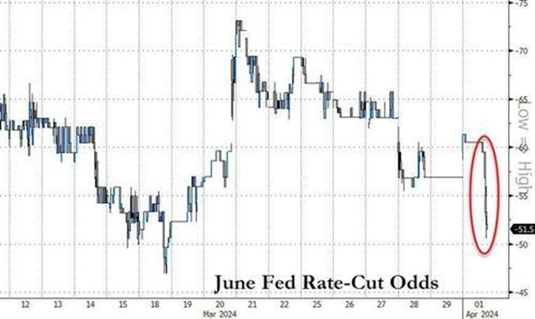 在美国 ISM 制造业活动指标意外出现自 2022 年以来的首次扩张后,债券交易员对美联储今年货币政策宽松的预期有所降温,6 月份首次降息的概率跌破 50%。