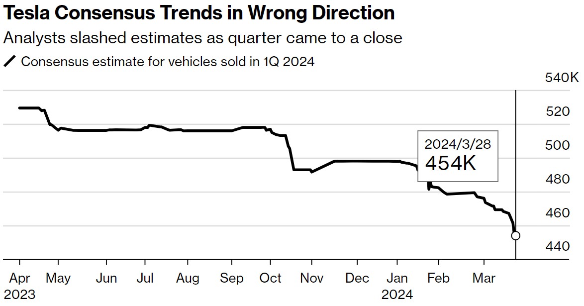 德意志銀行分析師 Emmanuel Rosner 在上個月短短兩週多的時間裏兩次下調了他的交貨預期。他現在預計,該公司本季度的汽車銷量約為 41.4 萬輛,同比下降約 2%。