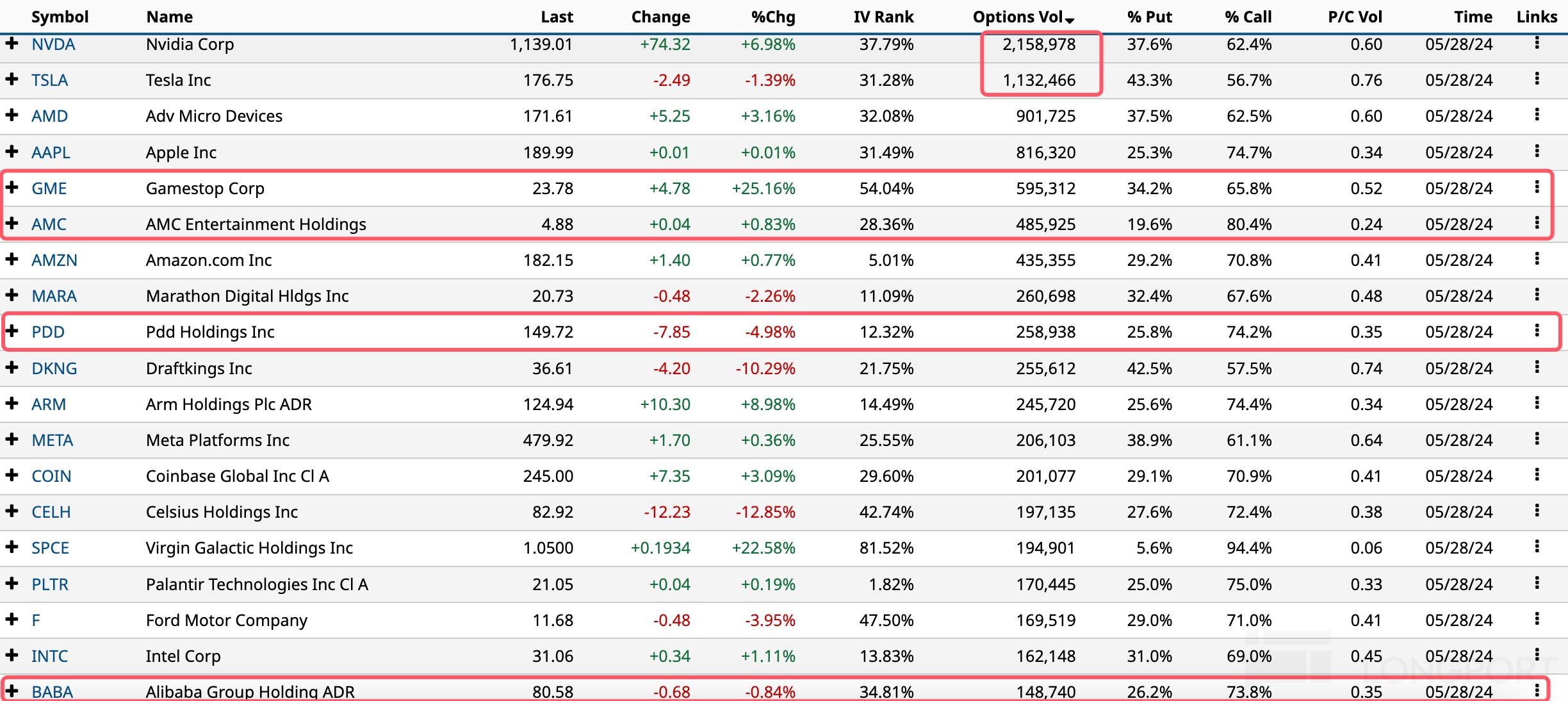 US Stock Options | NVIDIA, GME, AMC Trading Volume Surges! Tesla, PDD Trading Volume Falls