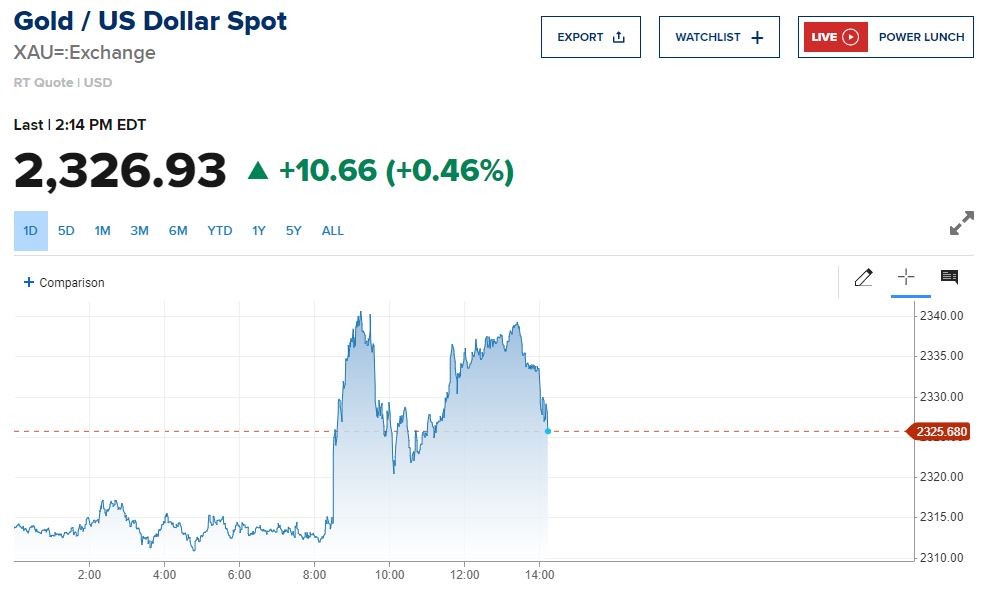決策公佈前 5分鐘,美元指數仍跌 0.8% 至 104.37,現貨黃金漲 0.8% 至 2334 美元,站穩 2330 美元整數位上方。