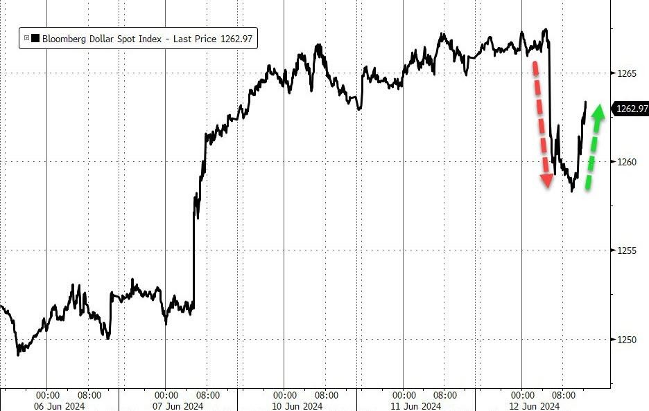 美元在點陣圖發佈後扭轉了早盤 CPI 帶來的大部分跌幅,不過當晚收盤仍走低,ICE 美元指數當天跌超 0.5%。