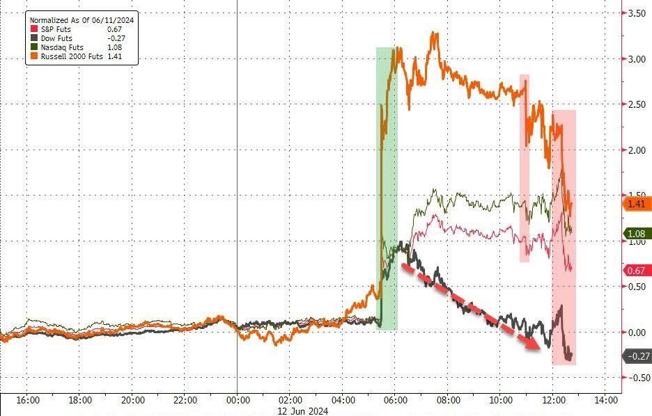 隔夜,美國 5 月 CPI 降温引發了美國股債瘋漲,隨後今年只 “降息一次” 的鷹派點陣圖公佈,鮑威爾發言也並未像市場預期那樣偏鴿派,股債回吐部分漲幅。