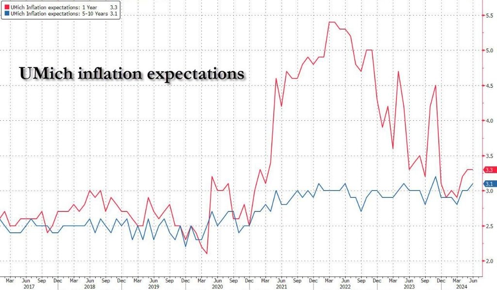 由於高物價水平繼續影響個人財務狀況,美國密歇根消費者信心指數在 6 月初又一次意外下挫,跌至七個月低點,長期通脹預期小幅上升。