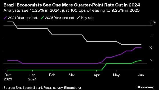 對於英國央行週四的會議上,即將到來的大選和一些揮之不去的物價壓力,使得至少等到 8 月份再降息的理由更加充分。本週也將召開會議的澳大利亞和挪威央行也預計將不急於降息,而半數受訪分析師認為,瑞士央行在 3 月大膽降息後,可能暫時避免第二次降息。其他國家的決策可能反映出全球貨幣週期的不同階段,巴西和巴拉圭料將維持借貸成本不變,智利料放慢降息步伐。