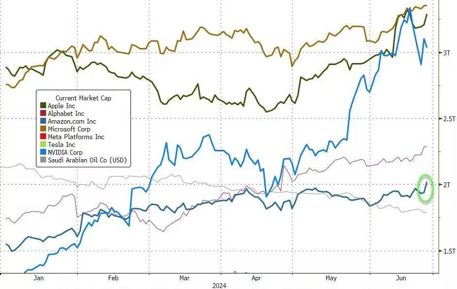 亞馬遜是最新一個晉級到 2 萬億美元及以上市值的巨頭。谷歌母公司 Alphabet 在 4 月底突破了 2 萬億美元的門檻,而英偉達、微軟和蘋果的市值均已經超過了 3 萬億美元。美國幾大科技巨頭市值不斷突破新的里程碑,凸顯由人工智能帶來的股市熱潮依然持續。