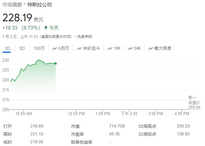 科技股漲跌不一。特斯拉漲超 4%,連續第六日上漲。消息面上,公司第二季度交付量達到 443956 輛,超出市場預期。