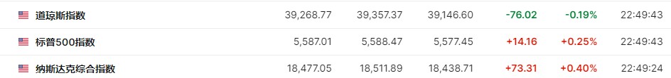 科技股为主的纳指,升破 18500 整数位,涨幅近 0.6%;标普 500 大盘刷新盘中新高,逼近 5600 点,涨幅超 0.28%;蓝筹股汇聚的道指盘初走低,跌幅扩大超 0.5%,后抹平过半跌幅;纳指在主要指数中涨幅相对最大。
