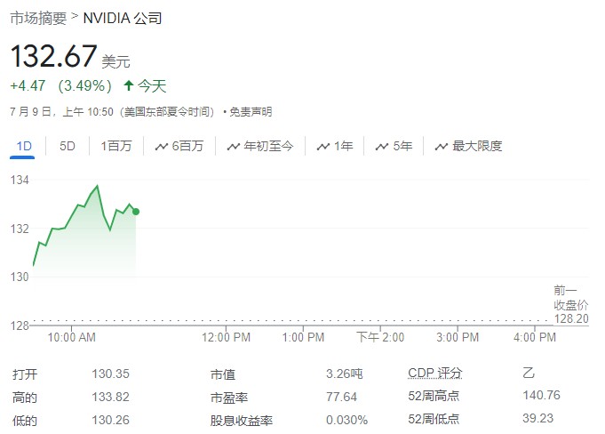 The US stock market hits a new high, with NVIDIA leading the technology stocks with a 4.4% increase, Tesla rising for the tenth consecutive day, and Apple becoming the top in market capitalization