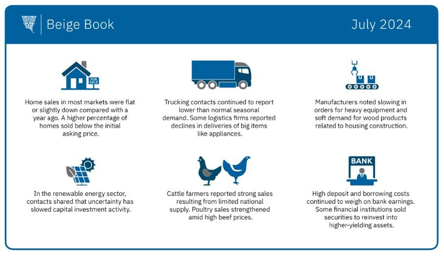 褐皮書在美聯儲 FOMC 政策會議前兩週發佈。本次褐皮書由里士滿聯儲編制而成,匯總了截至 7 月 8 日及之前六週內收集的信息,包括 12 個地區聯儲所在區商業狀況的軼事和評論。