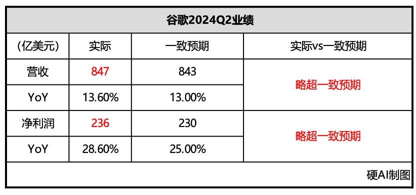總體來看,2024Q2 谷歌的營收和利潤均略高於分析師一致預期。本季度谷歌 ——