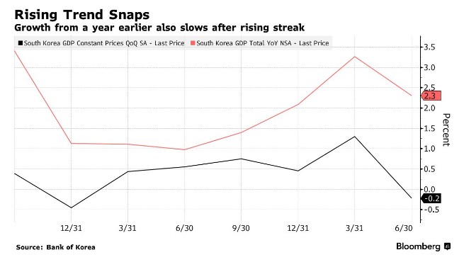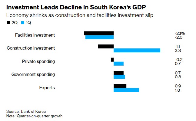 Consumer spending remains sluggish under high interest rates, with South Korea's Q2 economy unexpectedly contracting by 0.2%