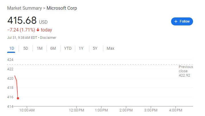 微軟下跌 1.7%。