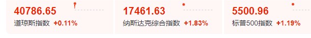 截止發稿,納指盤初漲 2.05%,標普 500 指數漲 1.33%,道指漲 0.02%。