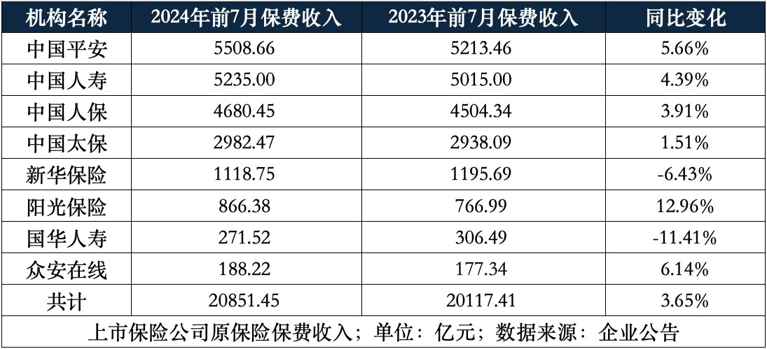 Review of the premium war in the first 7 months: Ping An, China Life surpass 500 billion yuan again, Sunshine's growth rate approaches 13%