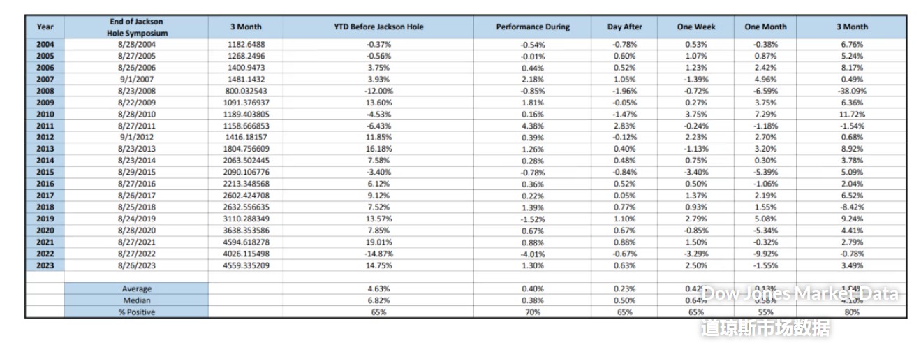 回顧過去,股市對美聯儲主席在傑克遜霍爾會議上的講話的平均反應平平,但大部分時候是積極的。
